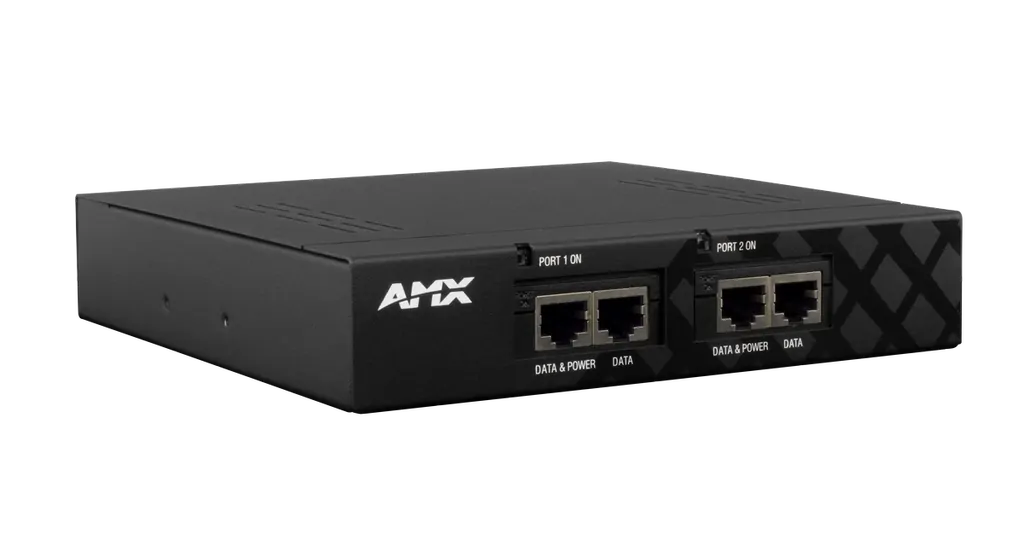 The PDXL-2 Dual Power over DXLINK Controller provides the ability to power a point-to-point DXLink Transmitter to DXLink Receiver without the need for an AC outlet in proximity to the location of the DXLink devices. When used with a NetLinx controller, the PDXL-2 can power down the DXLink devices as part of a standby mode for an entire room to reduce energy usage.