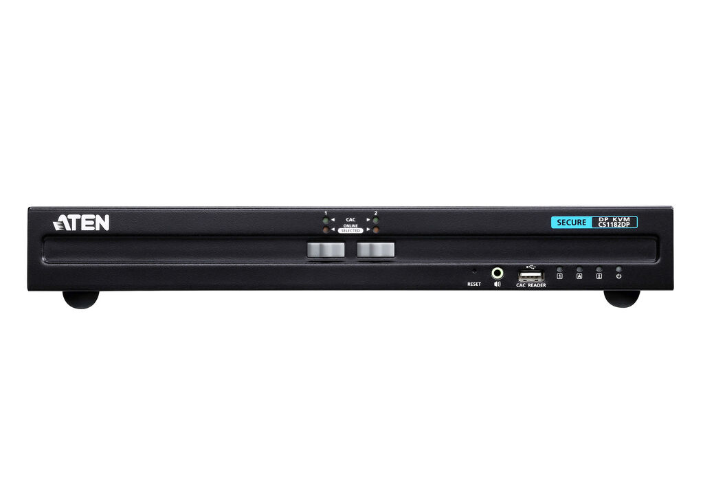 ATEN PSS PP v3.0 Secure KVM Switch (CS1182DP) provides isolation between computer sources and peripherals while sharing a single keyboard, mouse, monitor, speaker set, and Common Access Card (CAC) reader between connected computers of various security classifications. Compliance with PSS PP v3.0 ensures peripheral sharing capabilities provide maximum user data security when switching port focus, preventing unauthorized data flows or leakage between connected sources. Key protections include isolation and unidirectional data flow, restricted peripheral connectivity and filtering, user data protection, configurable device filtering and management, and always-on tamper-proof design, keeping sensitive assets isolated and providing advanced security and a user friendly design for instantly secure deployment.