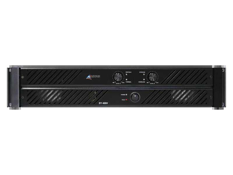 The Australian Monitor Synergy Series SY400V offers a host of practical features and delivers 200 watts @ 100V of power per channel in a space-saving high performance package. The SY400V is ideally suited to today’s complex multi-zone 100v line systems.