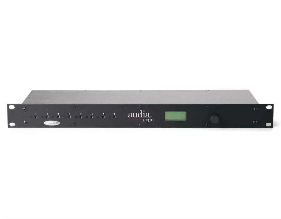 AudiaEXPO is an output expander for Audia,® the benchmark in digital audio systems for demanding professional sound installations. AudiaEXPO accepts eight channels of digital audio input via CobraNet® and provides eight line-level analog audio outputs. AudiaEXPO can simply add outputs to a centralized system, or it can extend system boundaries by providing outputs in remote locations. AudiaEXPO is represented as a block in Audia software, for easy inclusion into any system design. AudiaEXPO may also be used to provide outputs from other CobraNet compliant systems or devices.