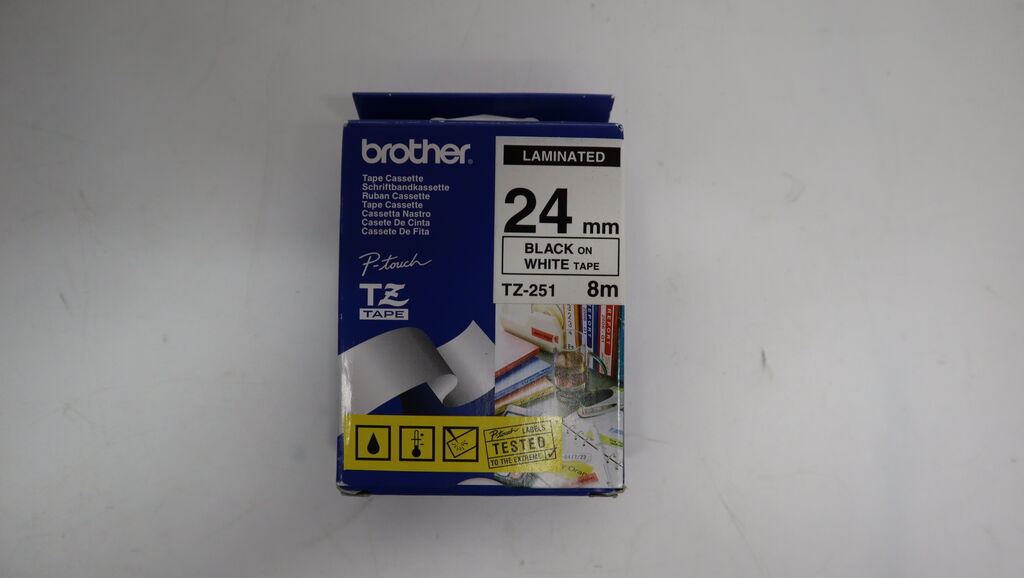 The Brother TZ-251 Black on White Tape is perfect for restocking your Brother TZ label maker. It is constructed from super-clear polyethylene laminate which is temperature, fade, water and chemical resistant. The strong adhesive backing makes it easy to stick your labels to all your necessary items.