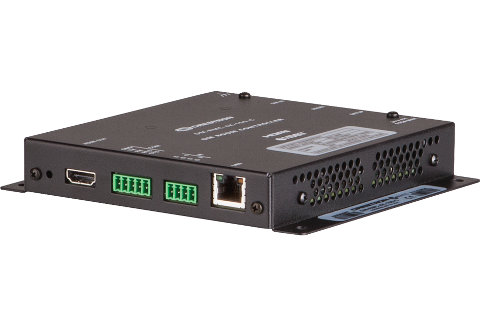The DM-RMC-4K-100-C includes built-in RS-232, IR, and Ethernet control ports to enable programmable control of the display device connected to it (via a control system). It also offers an alternative to such conventional control methods by harnessing the CEC (Consumer Electronics Control) signal embedded in HDMI. Through its connection to the control system, the DM-RMC-4K-100-C provides a gateway for controlling the display device right through the HDMI connection, potentially eliminating the need for any dedicated control wires or IR emitters.