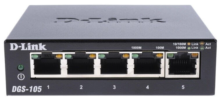 The DGS-105 5-Port Gigabit Unmanaged Desktop Switch offers an economical way for SOHO and small and medium businesses to benefit from the increased bandwidth of Gigabit Ethernet. It provides five Gigabit ports for easy expansion of your network and a quick way to upgrade your network to Gigabit connectivity. The DGS-105 is designed with durability and performance in mind. Its sturdy metal housing ensures the product can withstand wider operating by helping to dissipate heat and reduce stress on internal components.