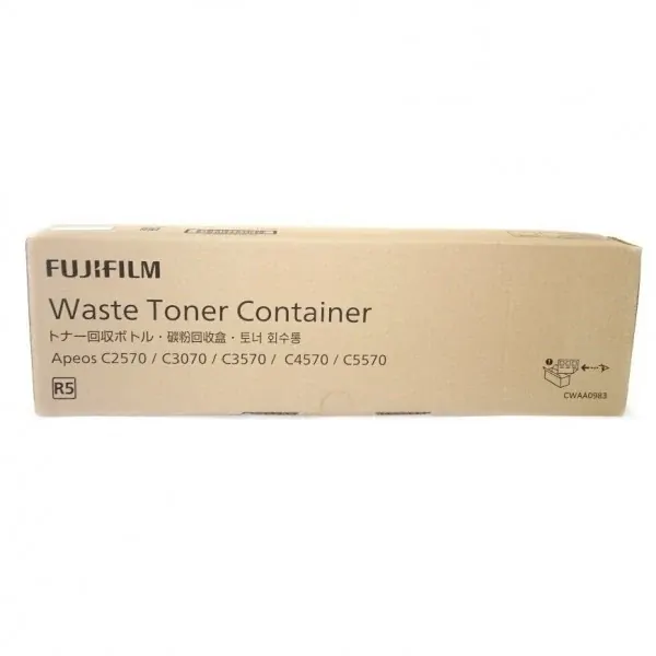 Genuine maintenance items are designed to keep your Fujifilm device operating efficiently and delivering the best quality. The CWAA0983 waste toner bottle is a critical part of the colour printing process. Every time a page is printed, a tiny amount of toner is left on the drum, which is wiped off with a blade and diverted to the waste toner bottle. Over time, the bottle becomes full and needs to be replaced. A wise choice is to have a spare on hand to minimise downtime. Produce precise, accurate colour even on the most demanding print jobs with genuine Fujifilm supplies, eliminate unnecessary downtime and improve productivity with consumables that are designed to work in your device error free. When you want to print the best, use the best - Fujifilm products.