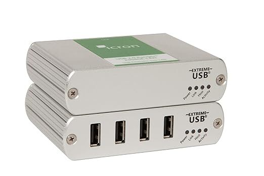 The USB 2.0 Ranger® 2304 is a four port USB 2.0 high speed extension solution, enabling USB 2.0 connections at up to 480Mbps over 100m/330ft of CAT 5e/6/7 cabling. The Ranger 2304 is the latest USB 2.0  extender system from Icron, offering the same reliable USB 2.0 extension benefits as the Ranger 2204, but with faster throughputs when using read/write devices such as external hard drives as well as supporting a greater number of connections (up to 31 devices and hubs). The Ranger 2304 provides an integrated four port remote USB 2.0 powered hub delivering 600mA to each port supporting all USB 1.1, 2.0 and 3.0 device types (up to 480Mbps).