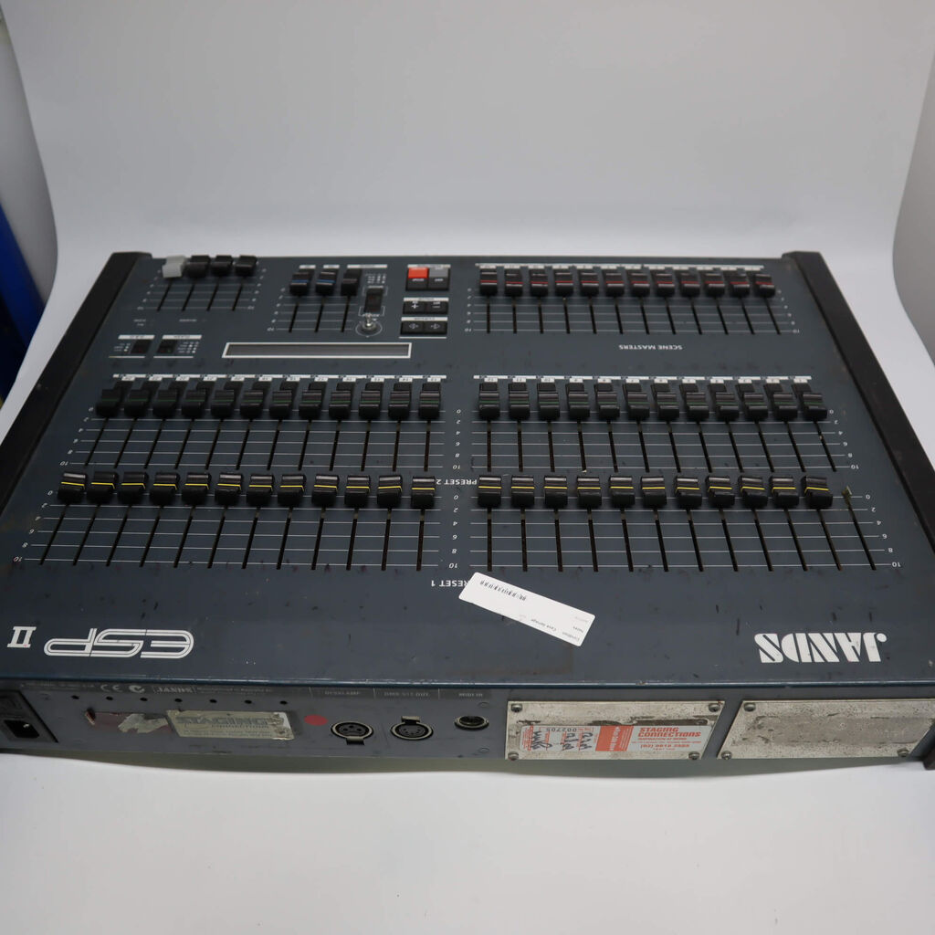 The ESPII 24 console successfully combines power with simplicity. Suited to the demanding requirements of live shows, the ESPII 24 console features one button recording and editing of scenes, chases, stacks and crossfades.