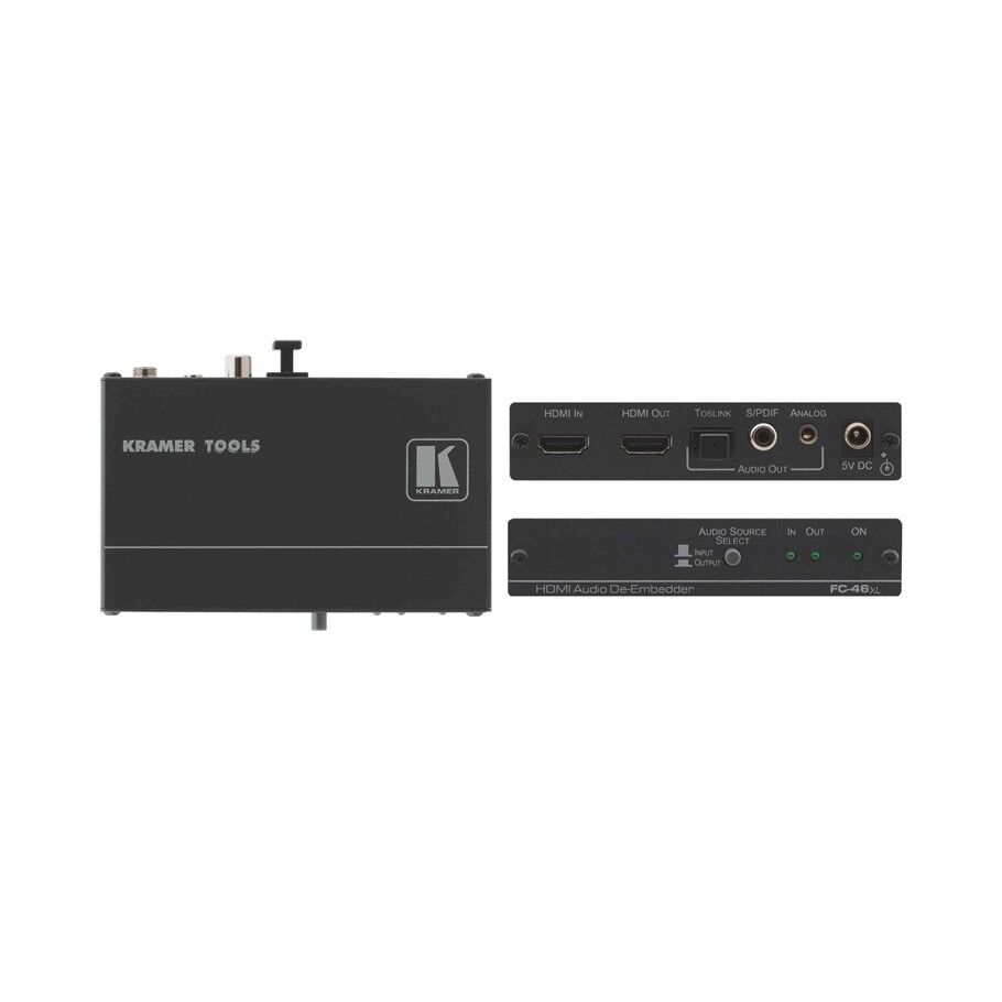 The FC−46xl is a high−performance HDMI audio de−embedder. The unit can de−embed audio from the HDMI input or from the HDMI output Audio Return channel to S/PDIF, TOSLINK® and analog audio outputs simultaneously.