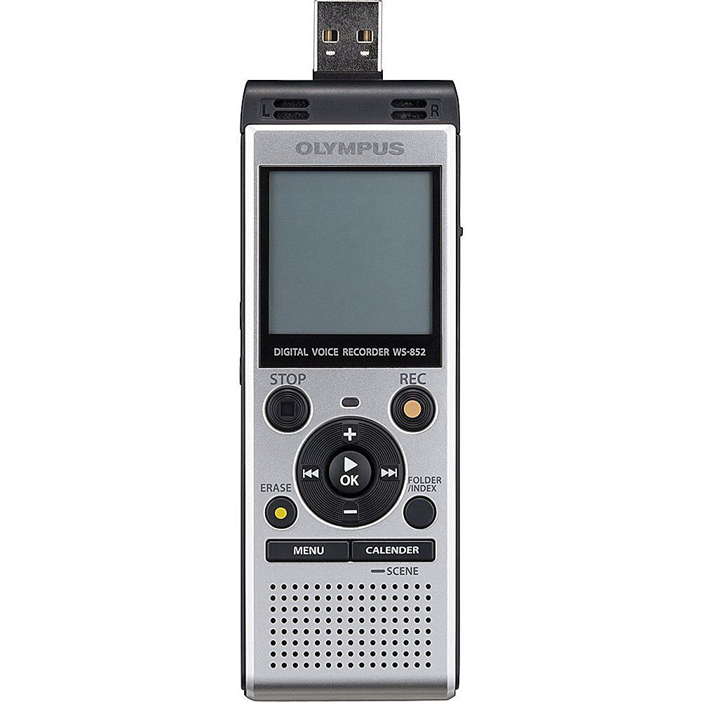 The silver WS-852 from Olympus is a digital voice recorder with two directional microphones positioned at a 90° layout for capturing audio. Recognized for its clear audio quality and superb operability, the WS-852 features the intelligent Auto Mode which automatically adjusts the recording level to match the volume of the sound source.