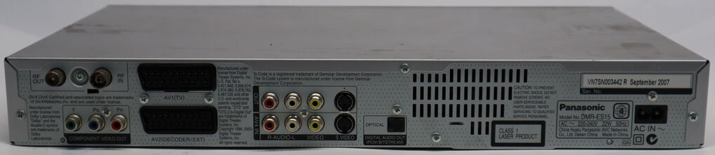Moreover, the DMR-ES15 offers incredible features that will be hard to match. Enjoy the awesome power of Dolby Digital and DTS audio decoding, one second quick-start recording, and time-slip function. With world-wide features, connectivity to various A/V sources, TV Guide On Screen, hi-speed dubbing, and simultaneous recording and playback capabilities, your entertainment choices are endless with the Panasonic DMR-ES15.