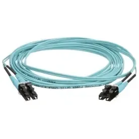 The duplex fiber patch cord is OM4 with 1.6mm jacketed cable. It is Riser (OFNR) rated, features LC Duplex connectors, has standard insertion loss, and is 3 meters long.