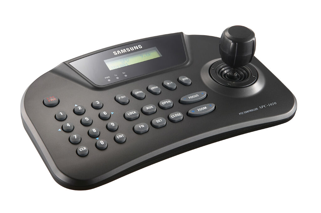 The Samsung SPC-1010 PTZ Control Keyboard is a versatile device designed for precise control of PTZ (pan-tilt-zoom) cameras. Its ergonomic design ensures comfortable usage during prolonged periods of operation. Equipped with intuitive joystick controls, it allows for seamless manipulation of camera movements, including pan, tilt, and zoom functions.