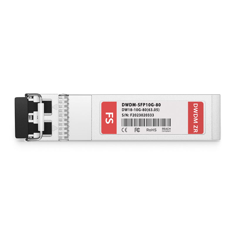 FS compatible SFP+ transceiver supports up to 80km link lengths over single-mode fibre (SMF) via an LC duplex connector. Digital diagnostics functions are accessible through a 2-wire serial interface as specified in SFF-8472, enabling real-time access to operating parametres. This transceiver utilises Sumitomo's TOSA (Transmitter Optical Sub-Assembly), guaranteeing consistent performance while being compliant with Multi-Source Agreement (MSA) standards for seamless network integration.