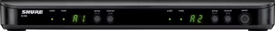 Dual analog wireless receiver provides improved linearity and frequency response with group and channel scan for easy set-up. Features include microprocessor internal antenna diversity, frequency QuickScan, and two-color audio status indicator LED.