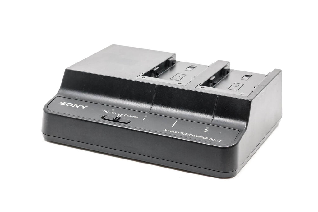 The BC-U2 battery charger simultaneously charges two compact BP-U90U60/U30 Lithium-ion batteries at high speed, providing power for XDCAM camcorders for up to six hours.*